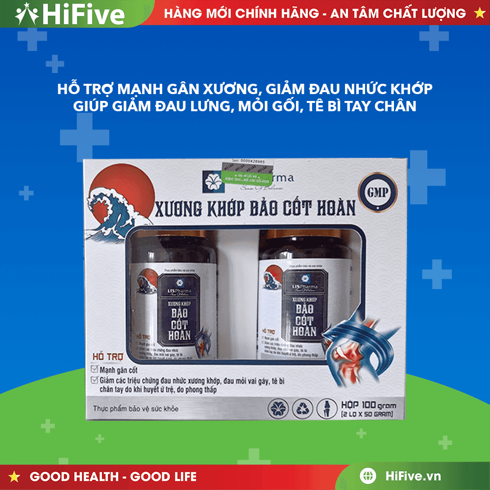 Xương Khớp Bảo Cốt Hoàn là sản phẩm bảo vệ sức khỏe do Công ty Cổ phần Y Dược LISPharma phát triển. Sản phẩm kế thừa bài thuốc cổ truyền Độc Hoạt Tang Ký Sinh kết hợp với các thảo dược quý như Quế Chi, Ngưu Tất, Đỗ Trọng, Tang Ký Sinh… giúp hỗ trợ giảm đau khớp, tăng cường tuần hoàn máu và cải thiện chức năng xương khớp.